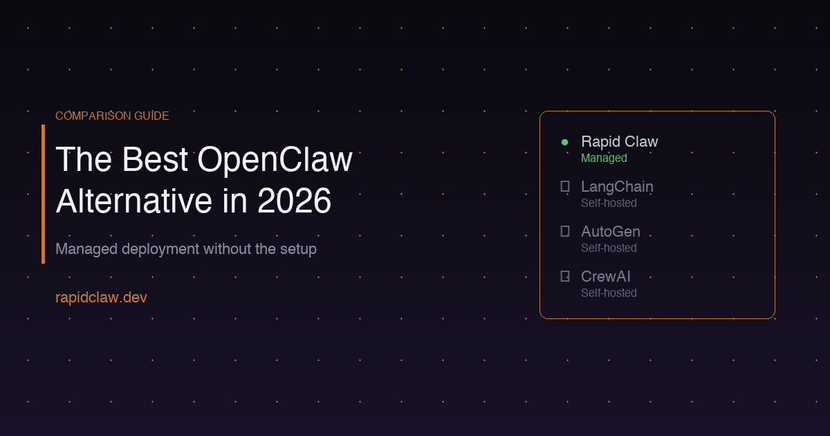 OpenClaw is an excellent framework. Most people searching for an “OpenClaw alternative” don't actually want a different framework — they want the same framework without the operational headache. Rapid Claw exists specifically for that use case.